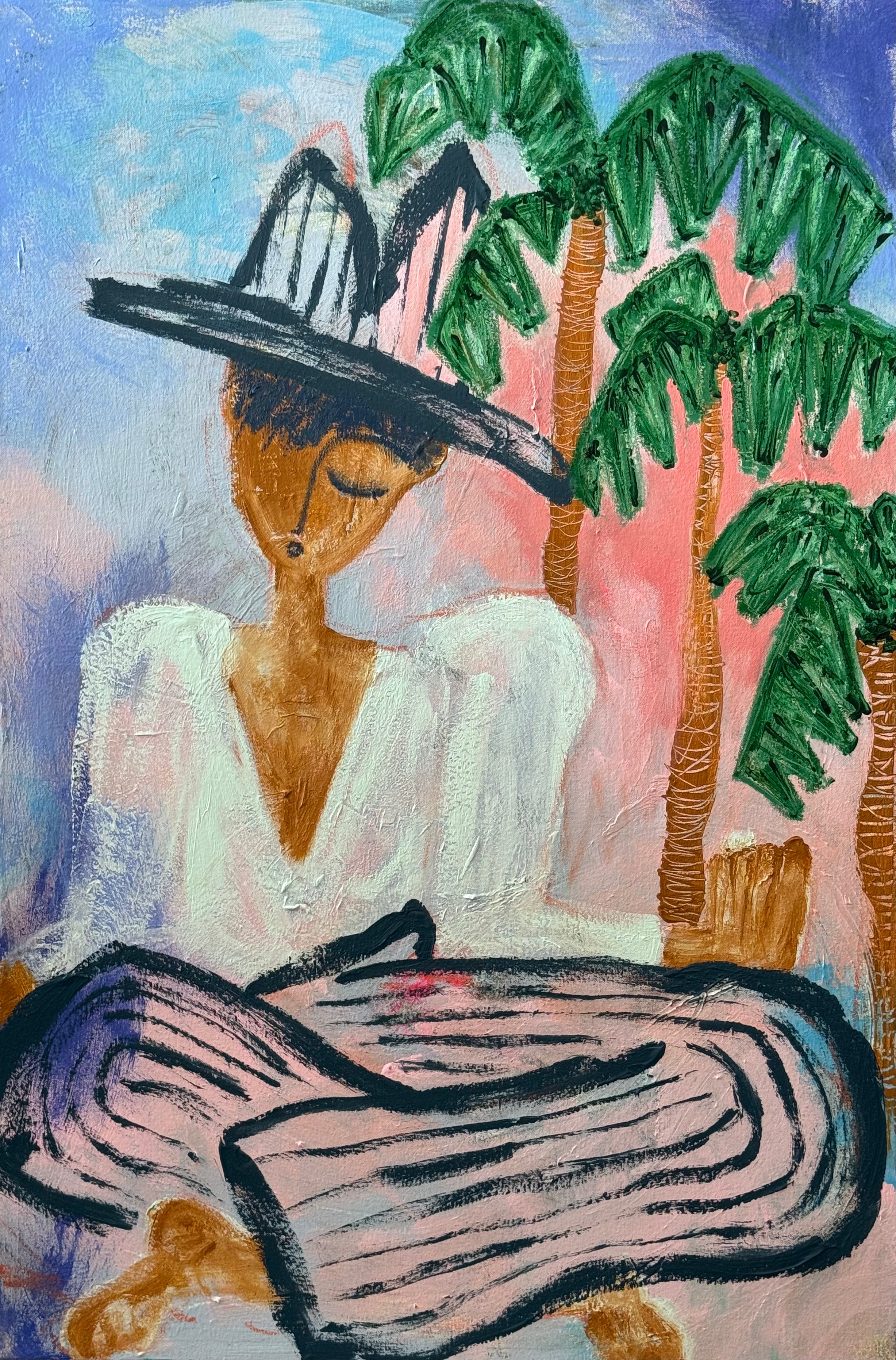 "Meditation in Melody III" Beneath the palms, she’s not running from the world – she’s kicking back, eyes shut, heart open, and meditating to its beautifully messy soundtrack.